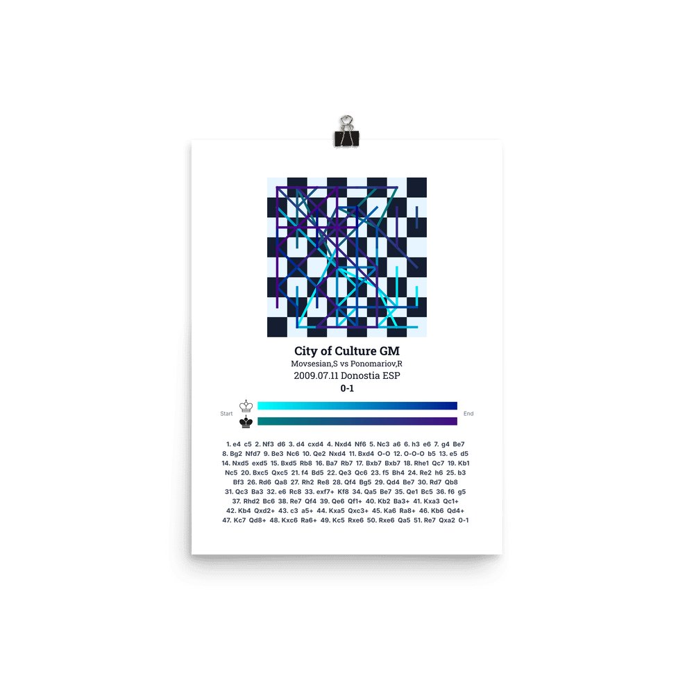 Museum-quality poster on thick, durable matte paper. A sharp, clean look for any chess visualisation.