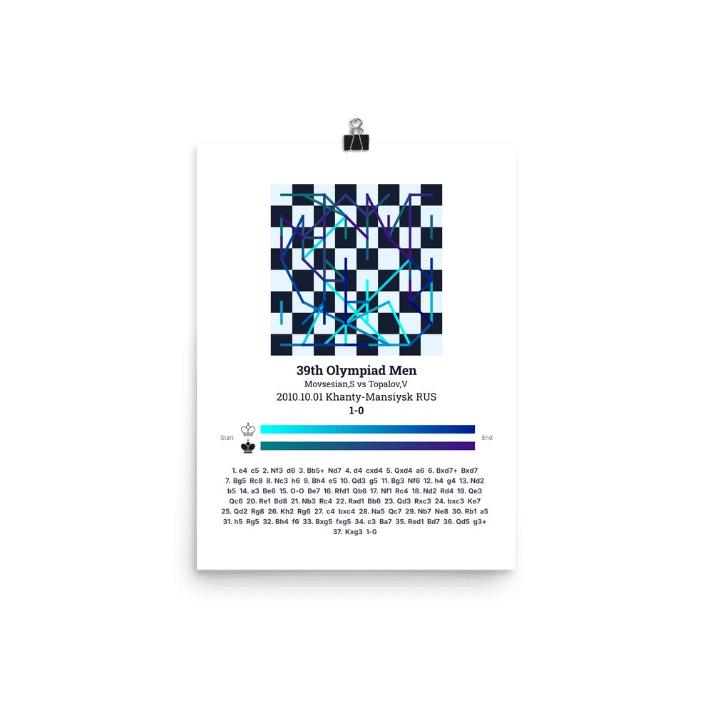 Museum-quality poster on thick, durable matte paper. A sharp, clean look for any chess visualisation.