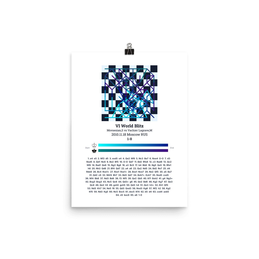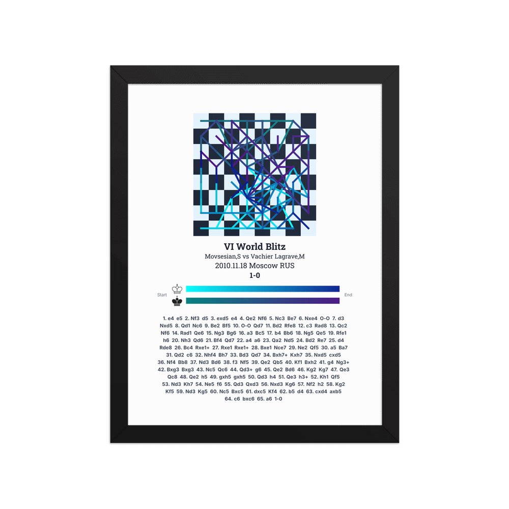 Museum-quality poster on thick, durable matte paper. A sharp, clean look for any chess visualisation.