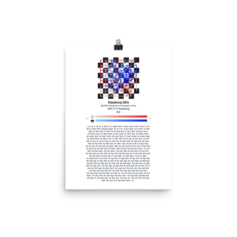 Museum-quality poster on thick, durable matte paper. A sharp, clean look for any chess visualisation.