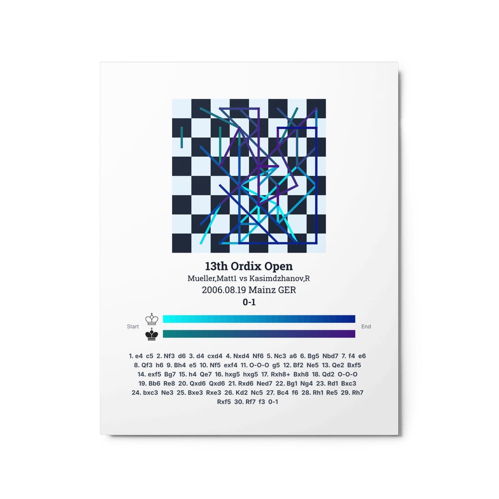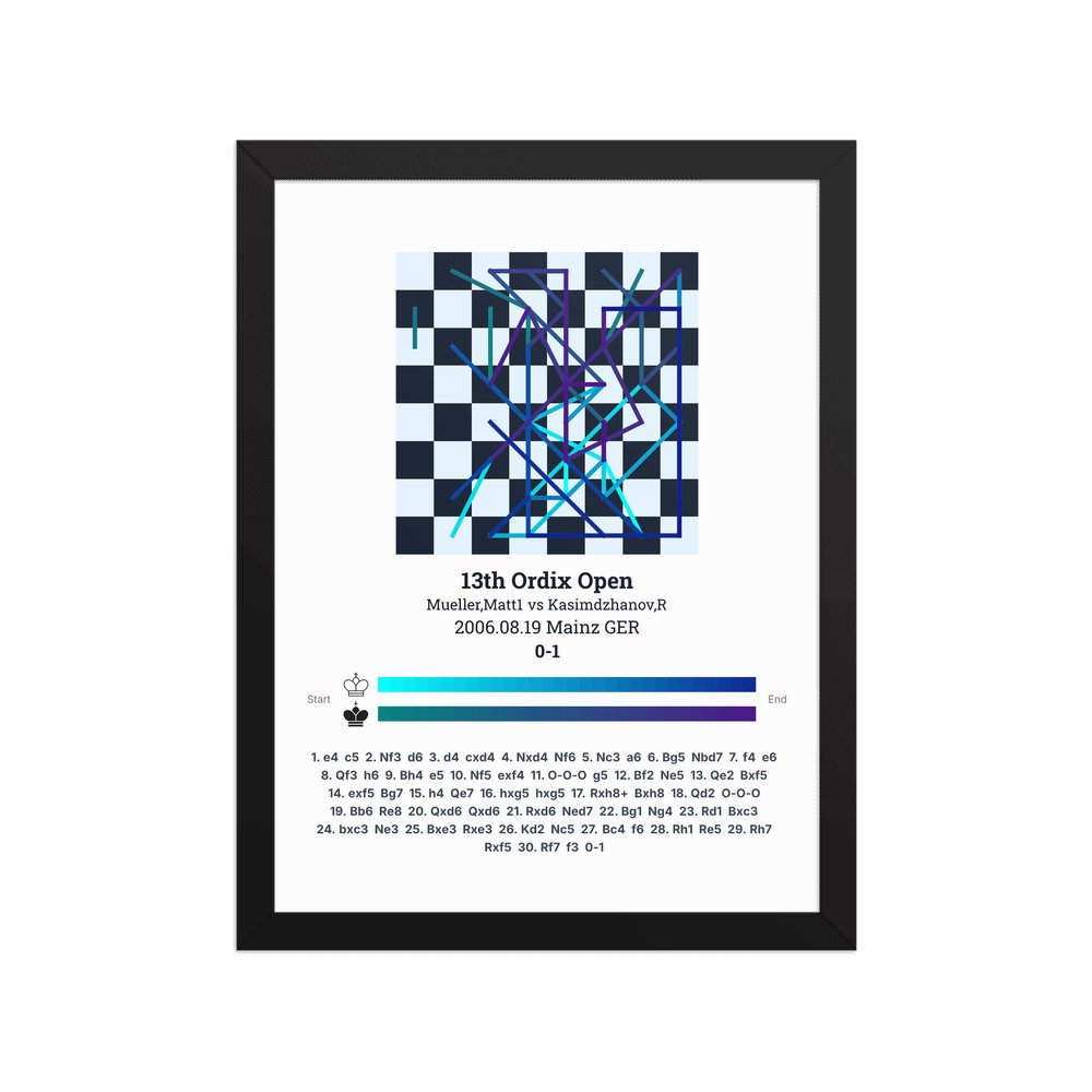 Museum-quality poster on thick, durable matte paper. A sharp, clean look for any chess visualisation.