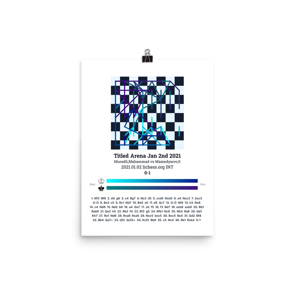 Museum-quality poster on thick, durable matte paper. A sharp, clean look for any chess visualisation.