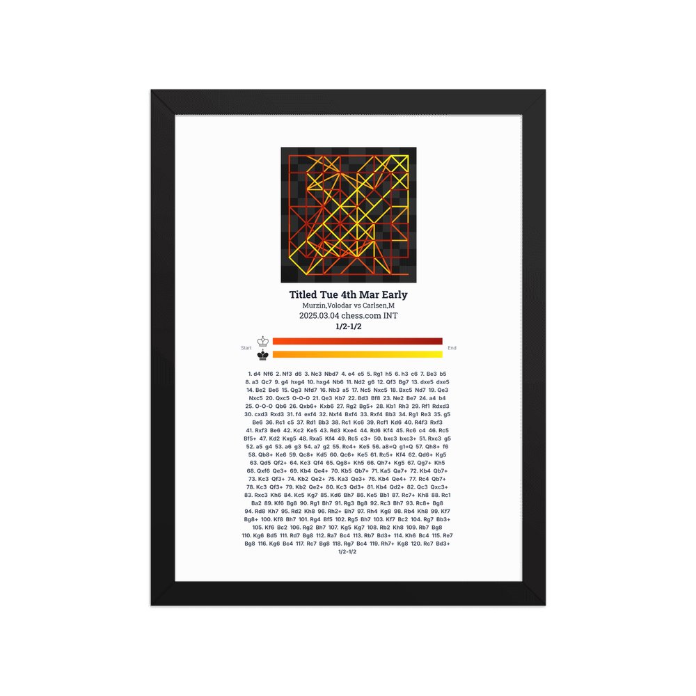 Museum-quality poster on thick, durable matte paper. A sharp, clean look for any chess visualisation.