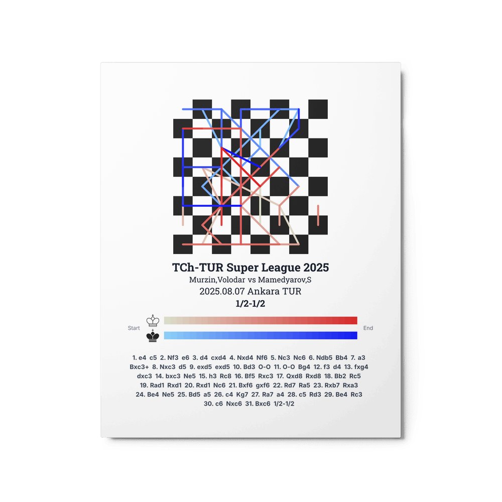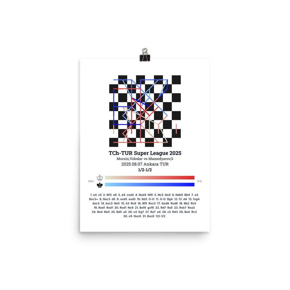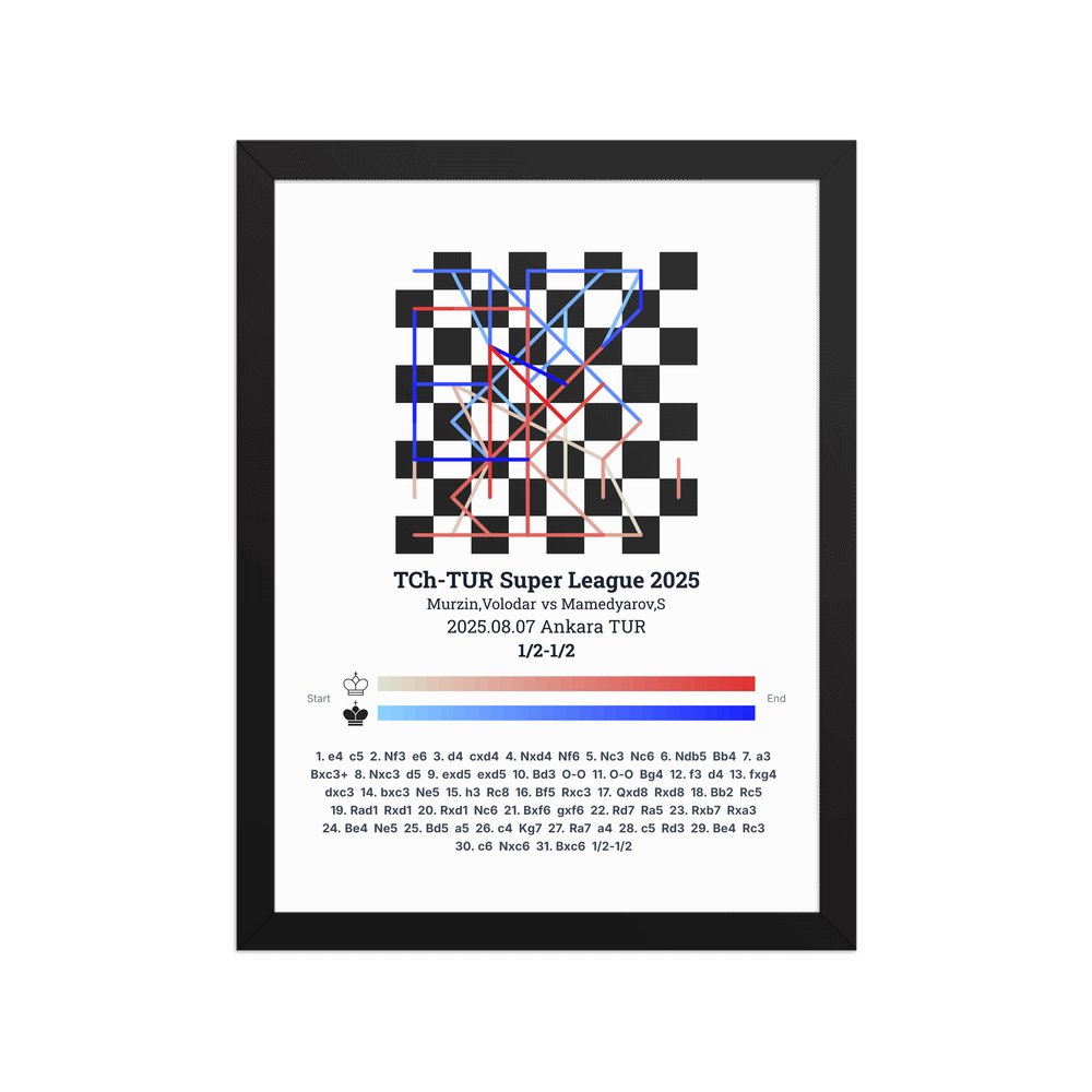 Museum-quality poster on thick, durable matte paper. A sharp, clean look for any chess visualisation.