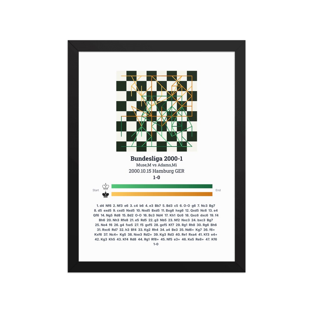 Museum-quality poster on thick, durable matte paper. A sharp, clean look for any chess visualisation.