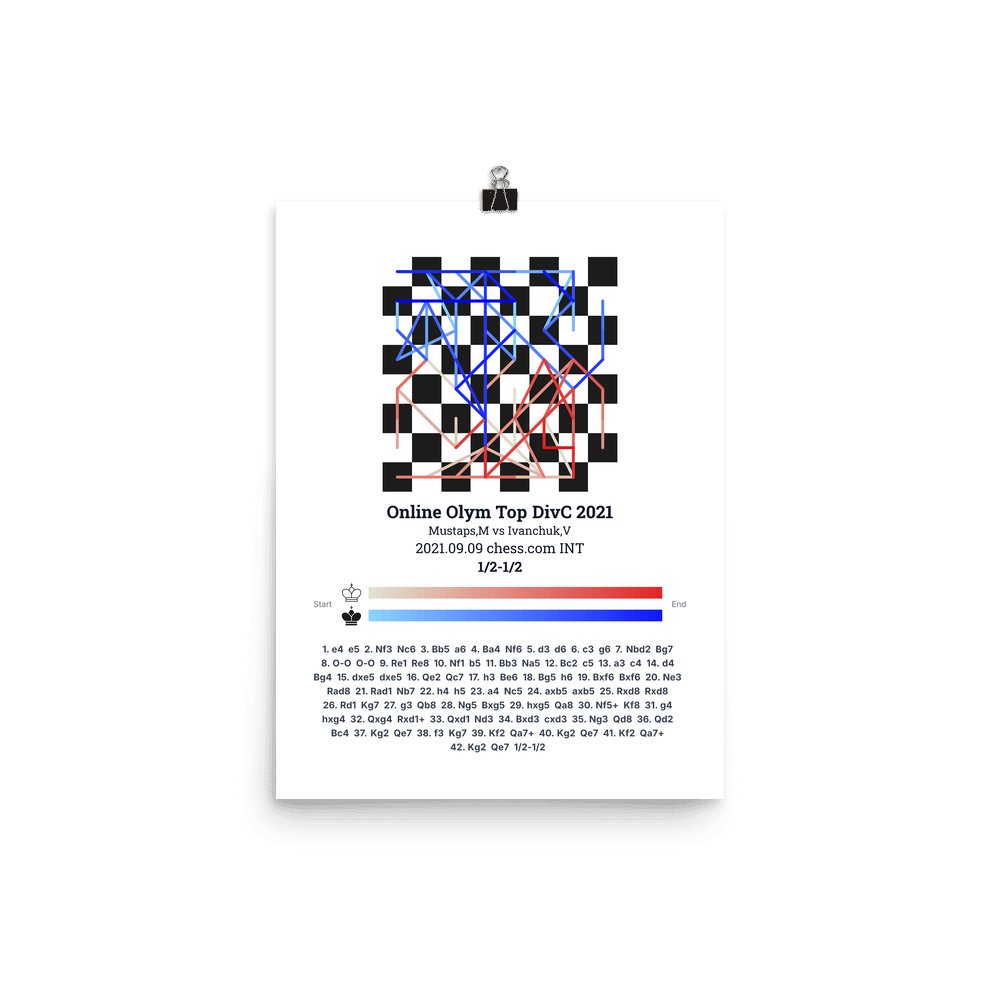 Museum-quality poster on thick, durable matte paper. A sharp, clean look for any chess visualisation.