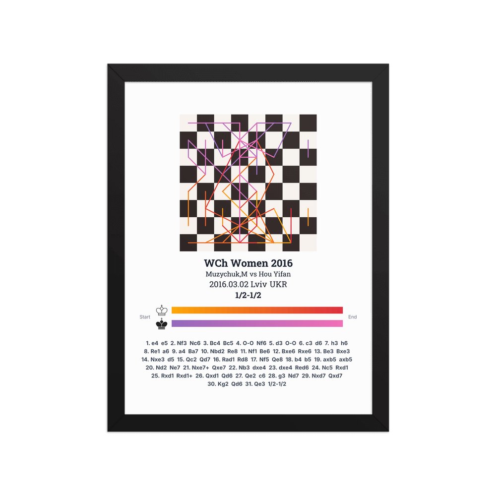 Museum-quality poster on thick, durable matte paper. A sharp, clean look for any chess visualisation.