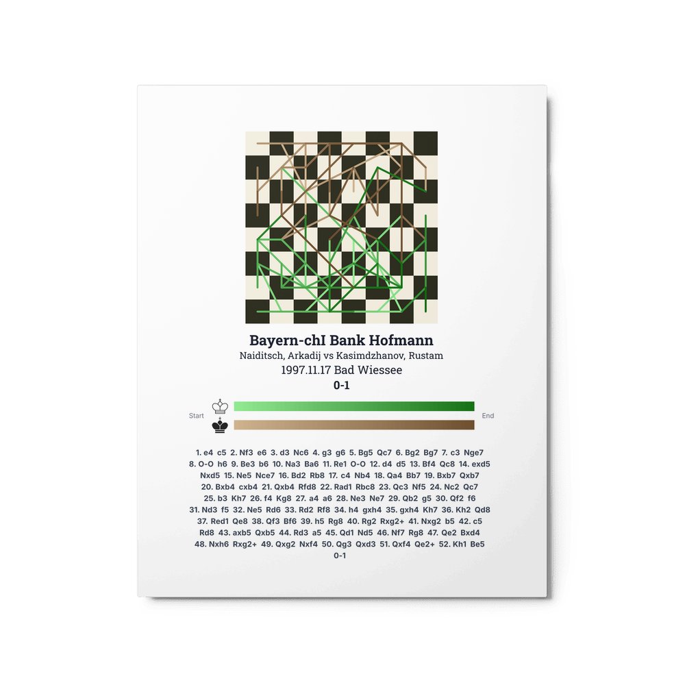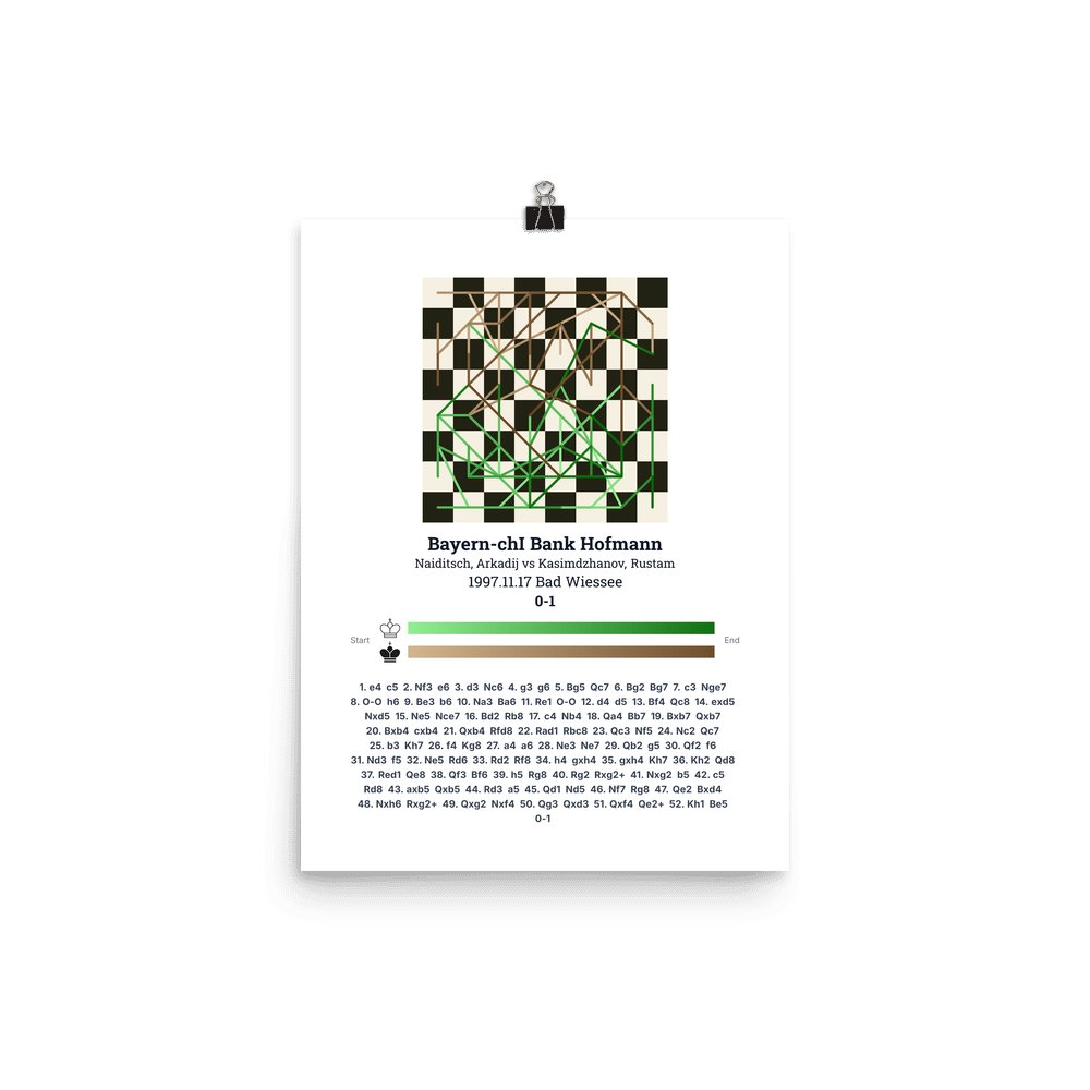 Museum-quality poster on thick, durable matte paper. A sharp, clean look for any chess visualisation.