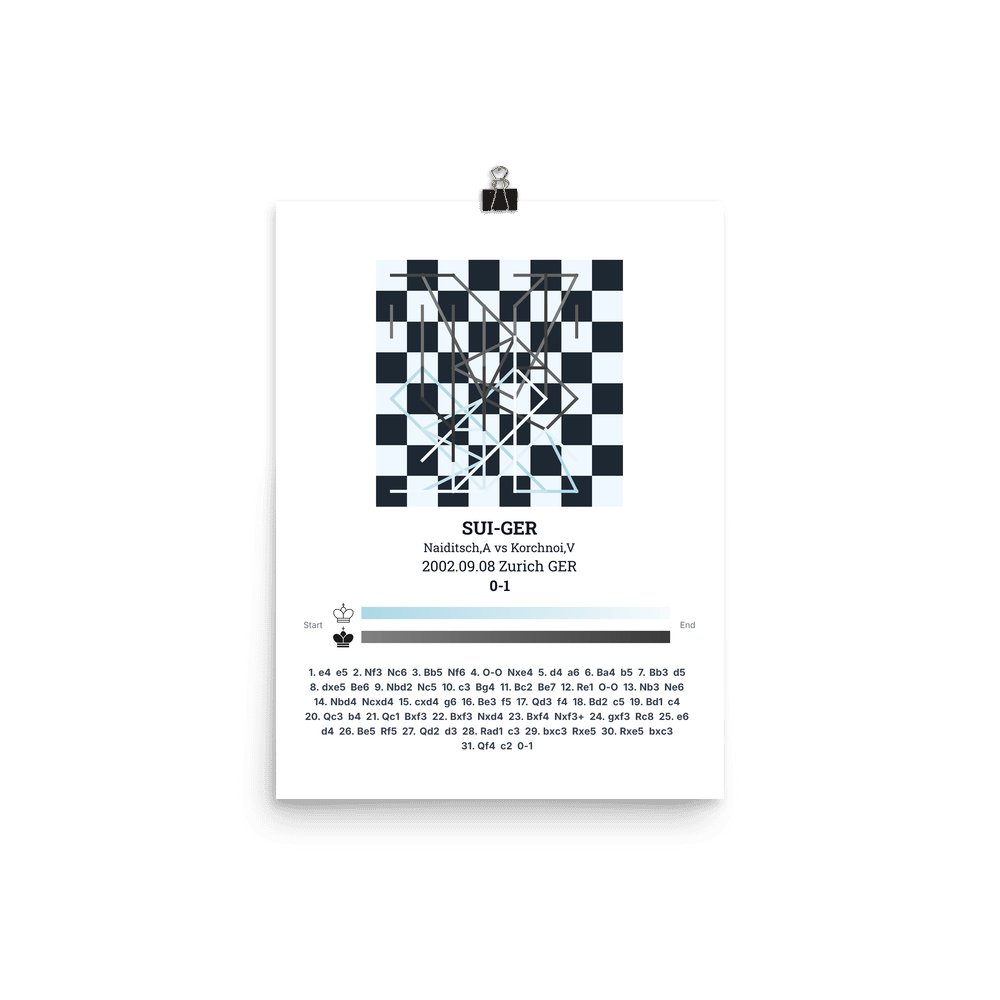 Museum-quality poster on thick, durable matte paper. A sharp, clean look for any chess visualisation.