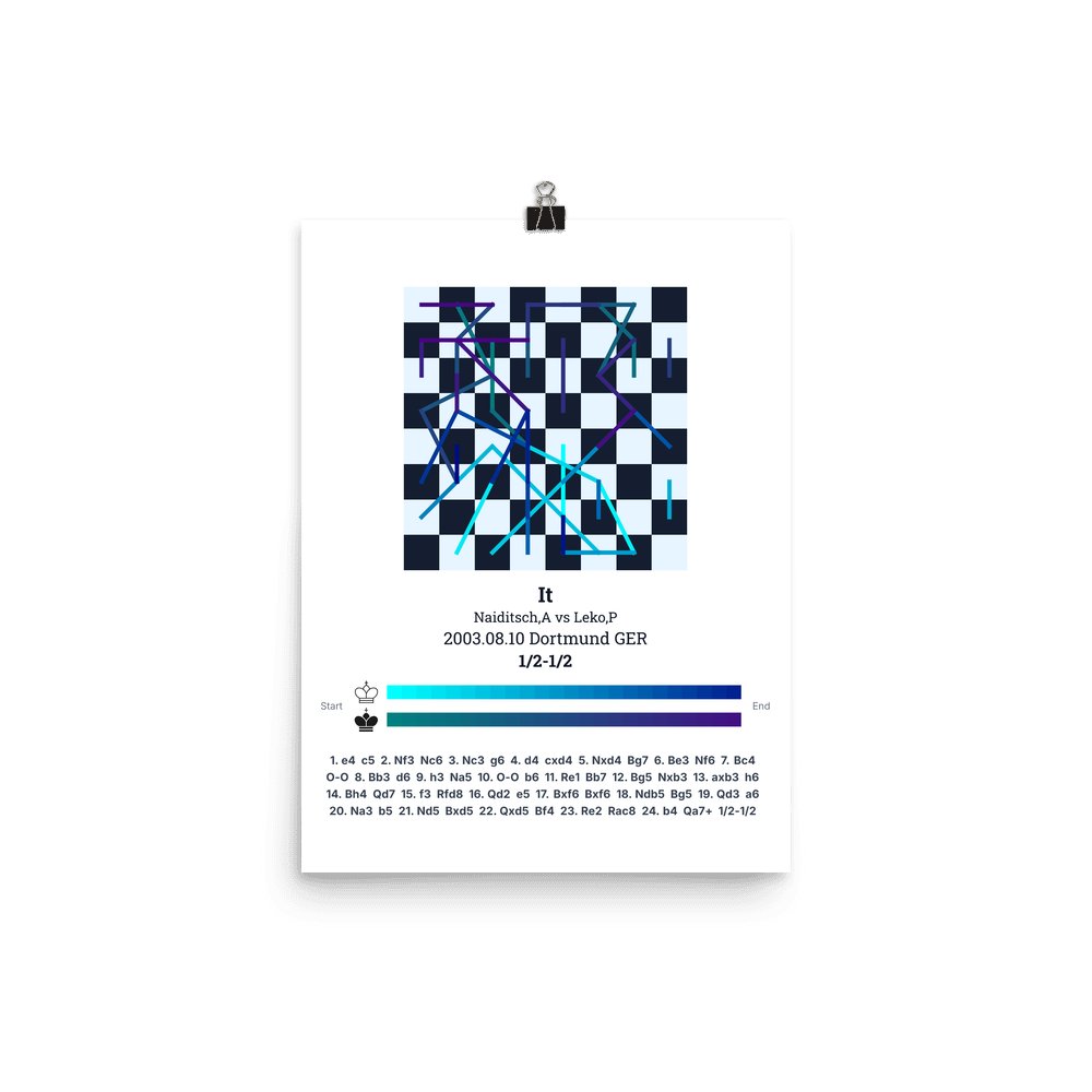 Museum-quality poster on thick, durable matte paper. A sharp, clean look for any chess visualisation.