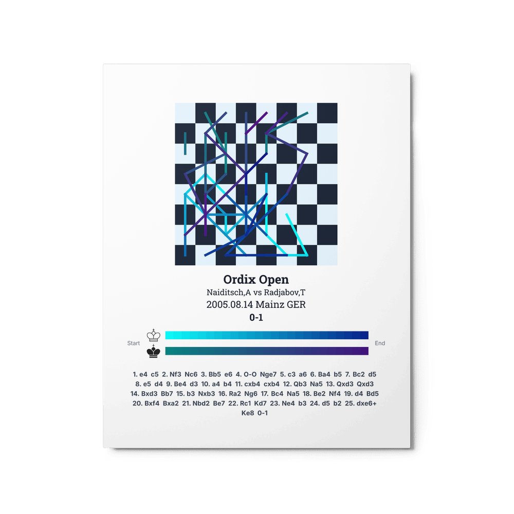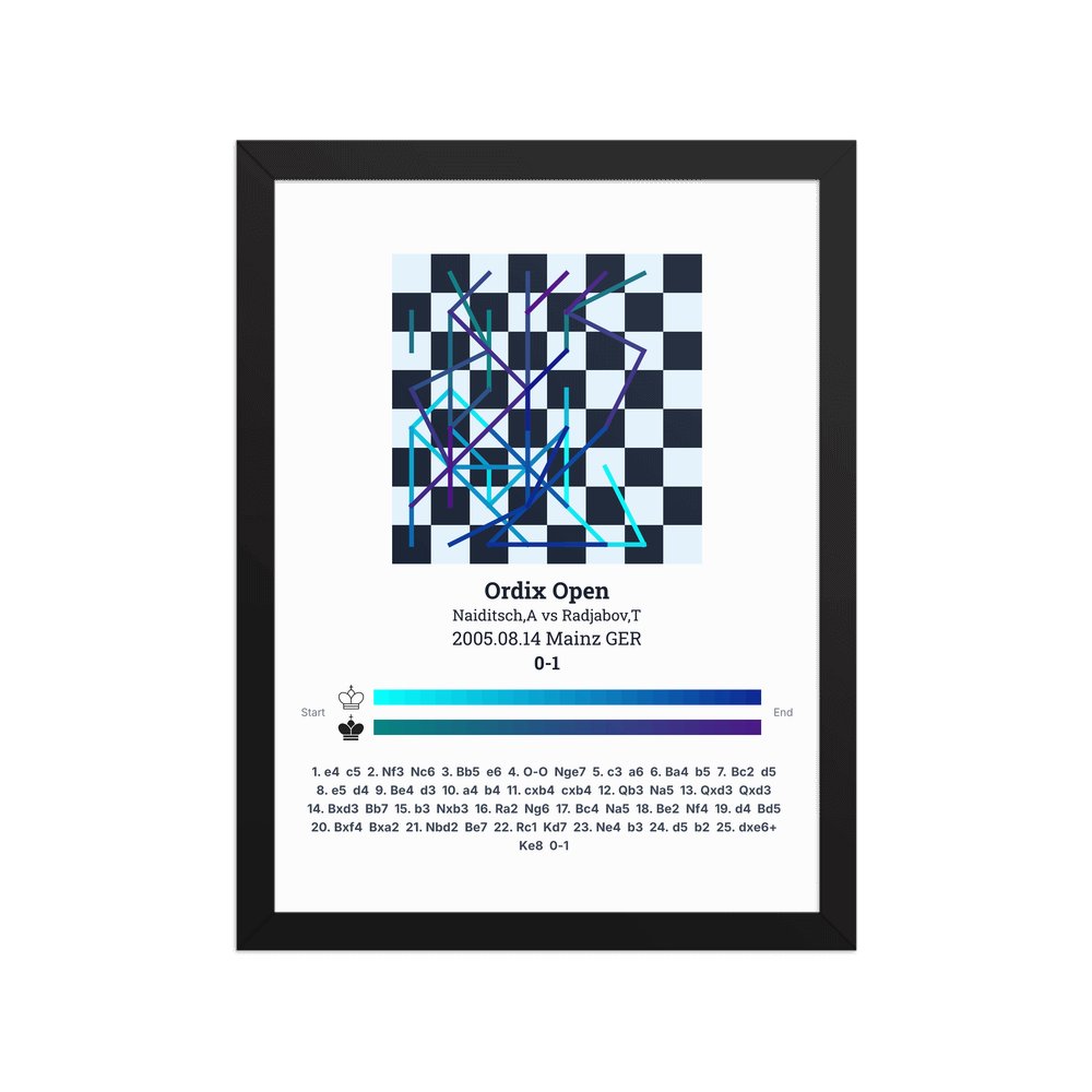 Museum-quality poster on thick, durable matte paper. A sharp, clean look for any chess visualisation.