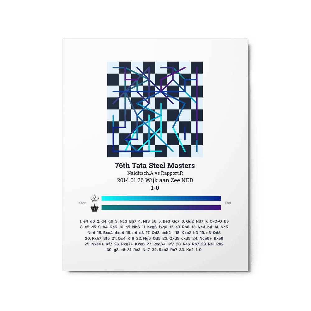 Museum-quality poster on thick, durable matte paper. A sharp, clean look for any chess visualisation.