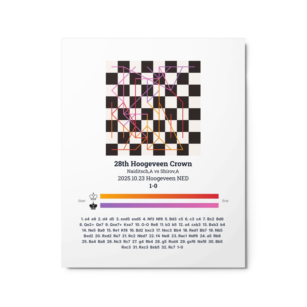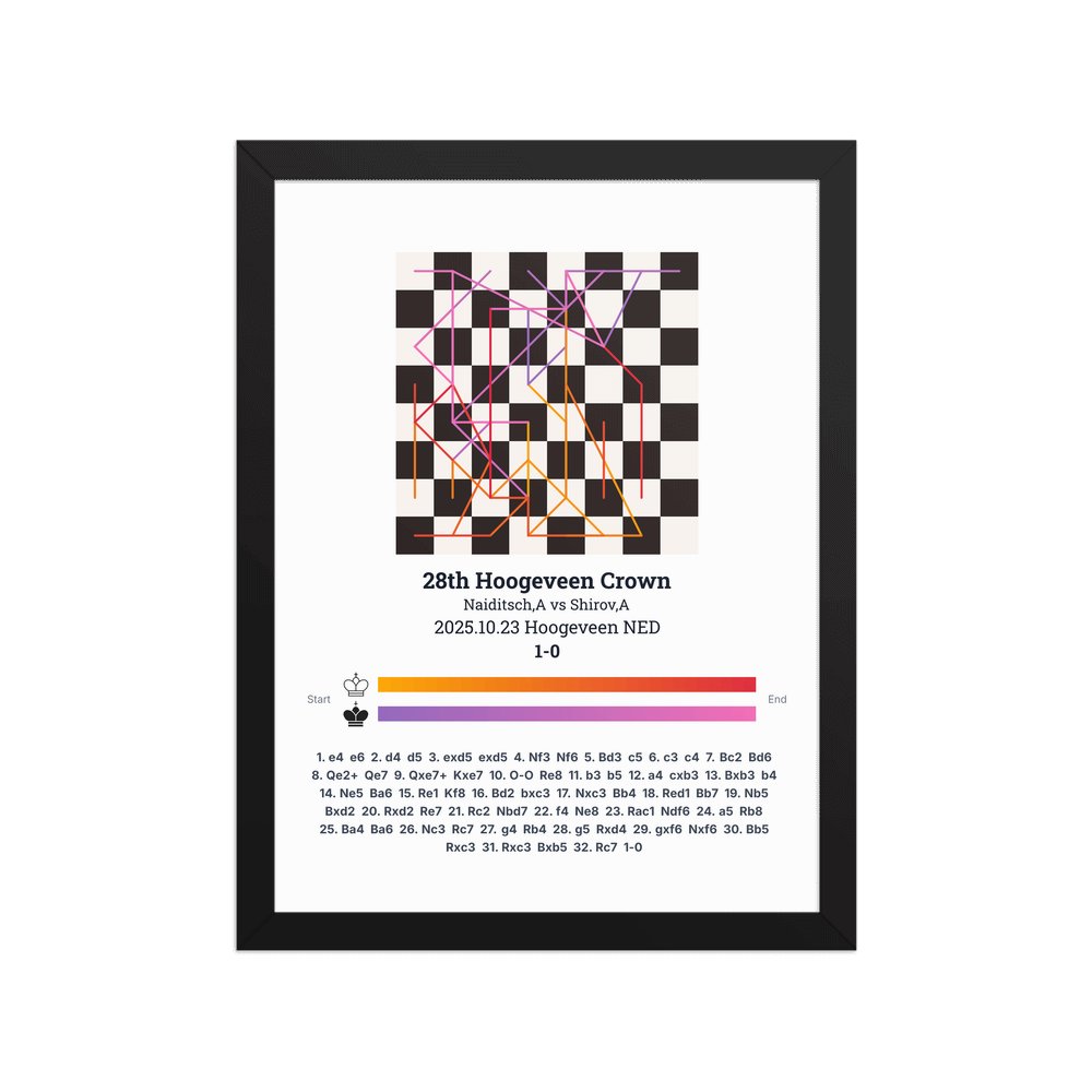 Museum-quality poster on thick, durable matte paper. A sharp, clean look for any chess visualisation.