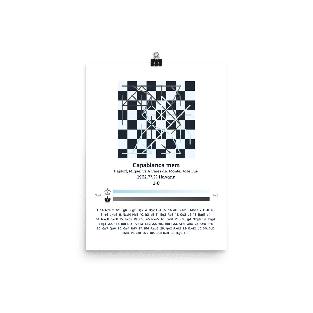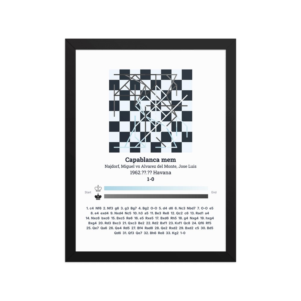 Museum-quality poster on thick, durable matte paper. A sharp, clean look for any chess visualisation.