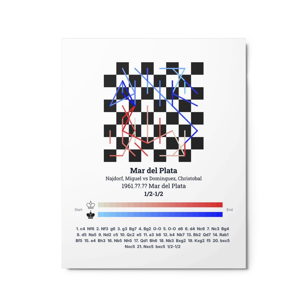 Museum-quality poster on thick, durable matte paper. A sharp, clean look for any chess visualisation.