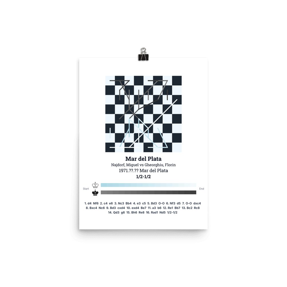 Museum-quality poster on thick, durable matte paper. A sharp, clean look for any chess visualisation.