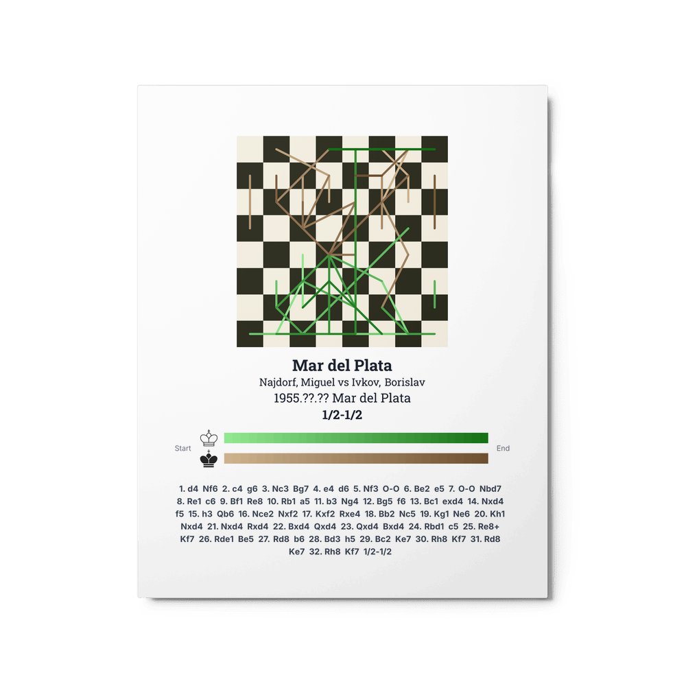 Museum-quality poster on thick, durable matte paper. A sharp, clean look for any chess visualisation.