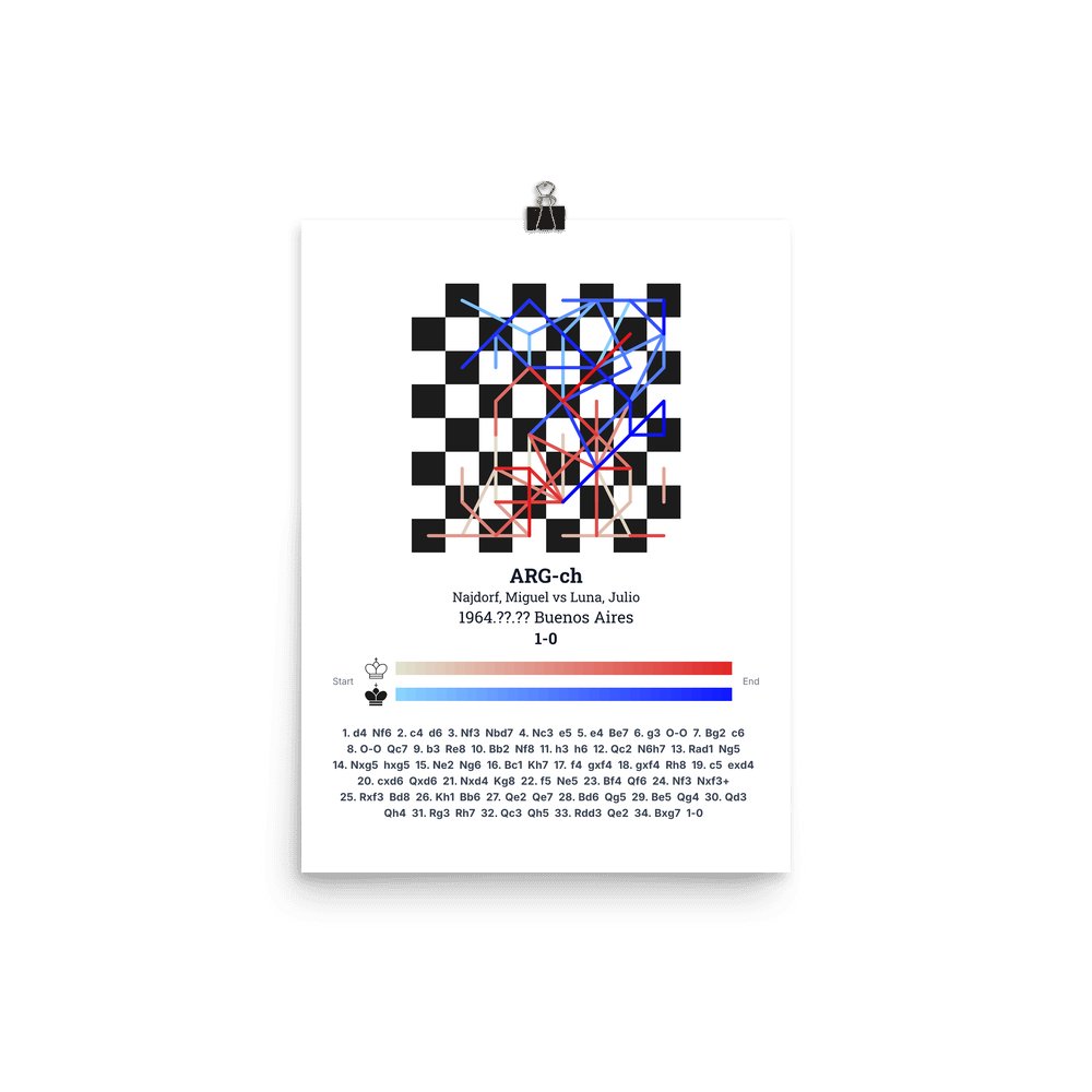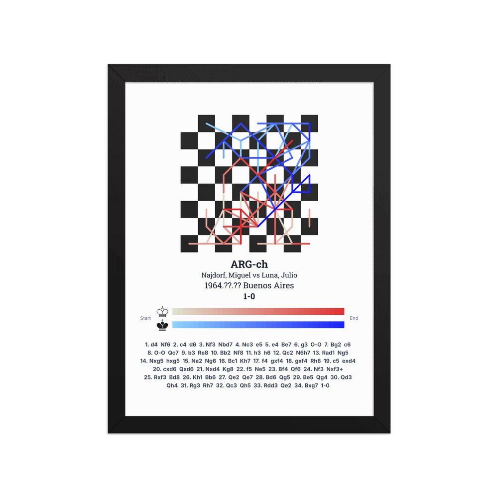 Museum-quality poster on thick, durable matte paper. A sharp, clean look for any chess visualisation.
