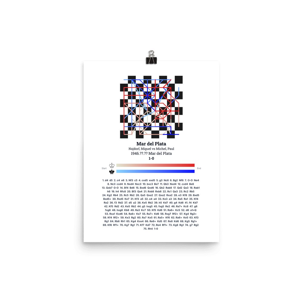 Museum-quality poster on thick, durable matte paper. A sharp, clean look for any chess visualisation.