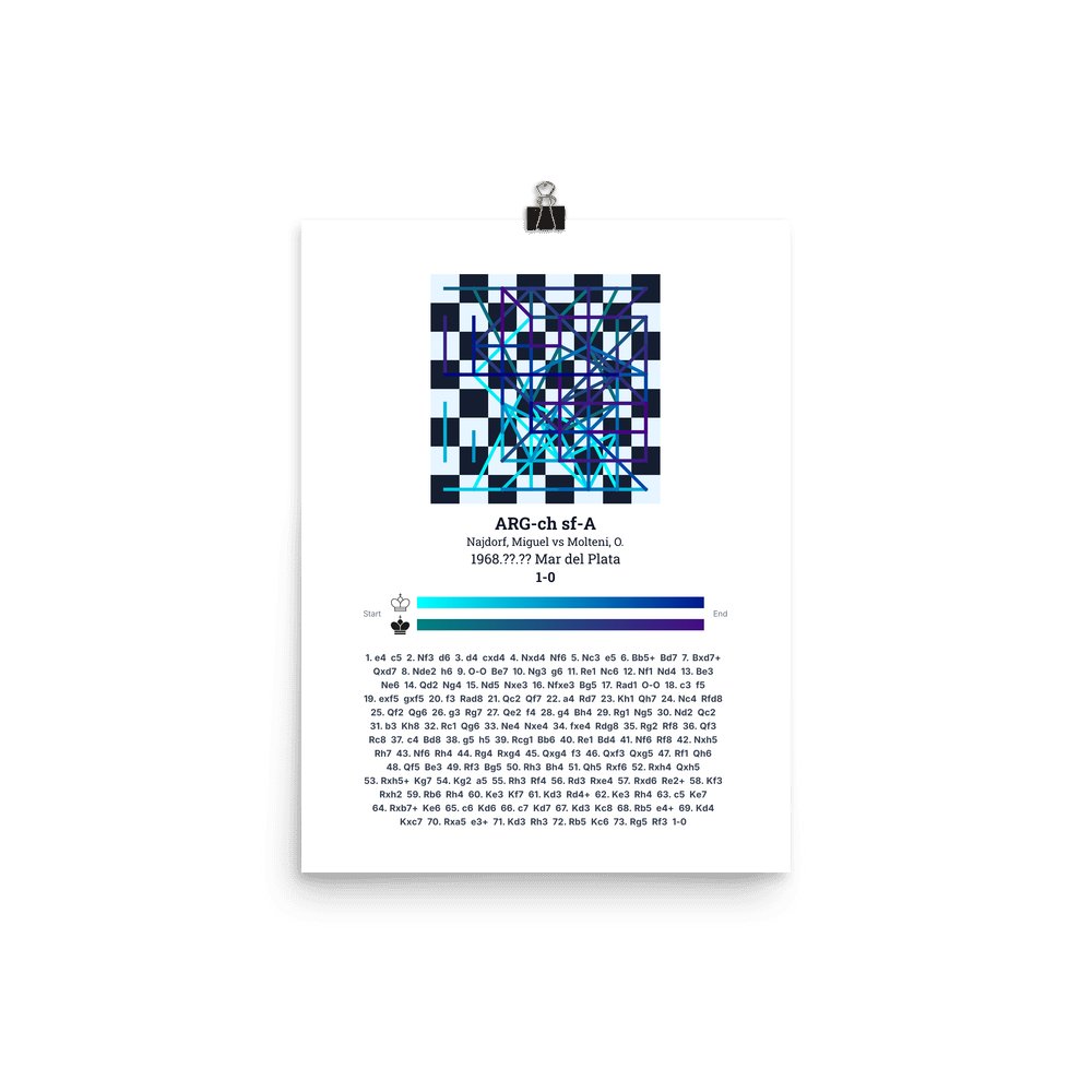 Museum-quality poster on thick, durable matte paper. A sharp, clean look for any chess visualisation.
