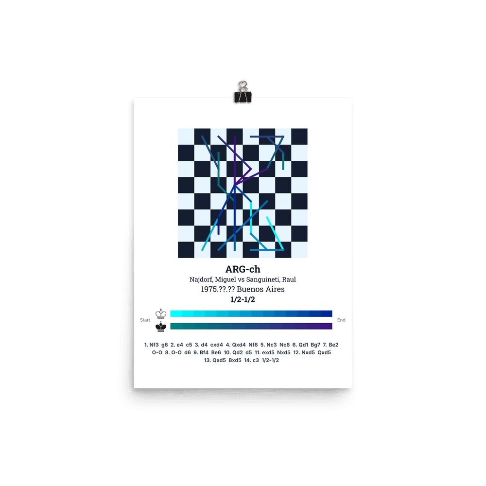 Museum-quality poster on thick, durable matte paper. A sharp, clean look for any chess visualisation.