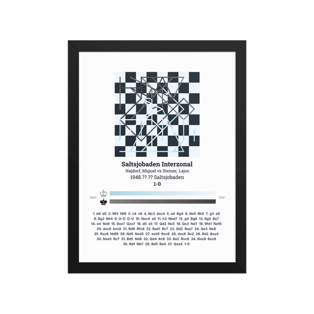 Museum-quality poster on thick, durable matte paper. A sharp, clean look for any chess visualisation.