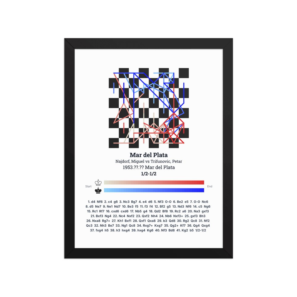 Museum-quality poster on thick, durable matte paper. A sharp, clean look for any chess visualisation.
