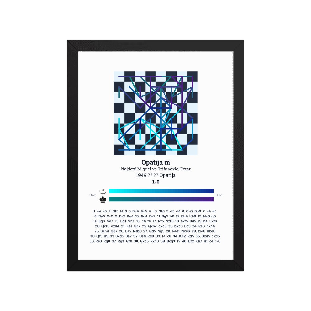 Museum-quality poster on thick, durable matte paper. A sharp, clean look for any chess visualisation.