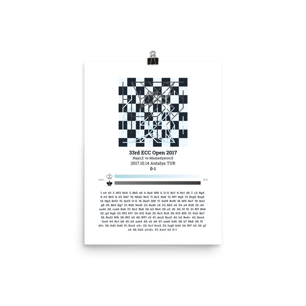 Museum-quality poster on thick, durable matte paper. A sharp, clean look for any chess visualisation.