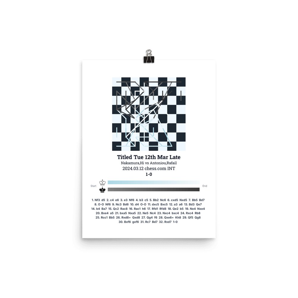 Museum-quality poster on thick, durable matte paper. A sharp, clean look for any chess visualisation.
