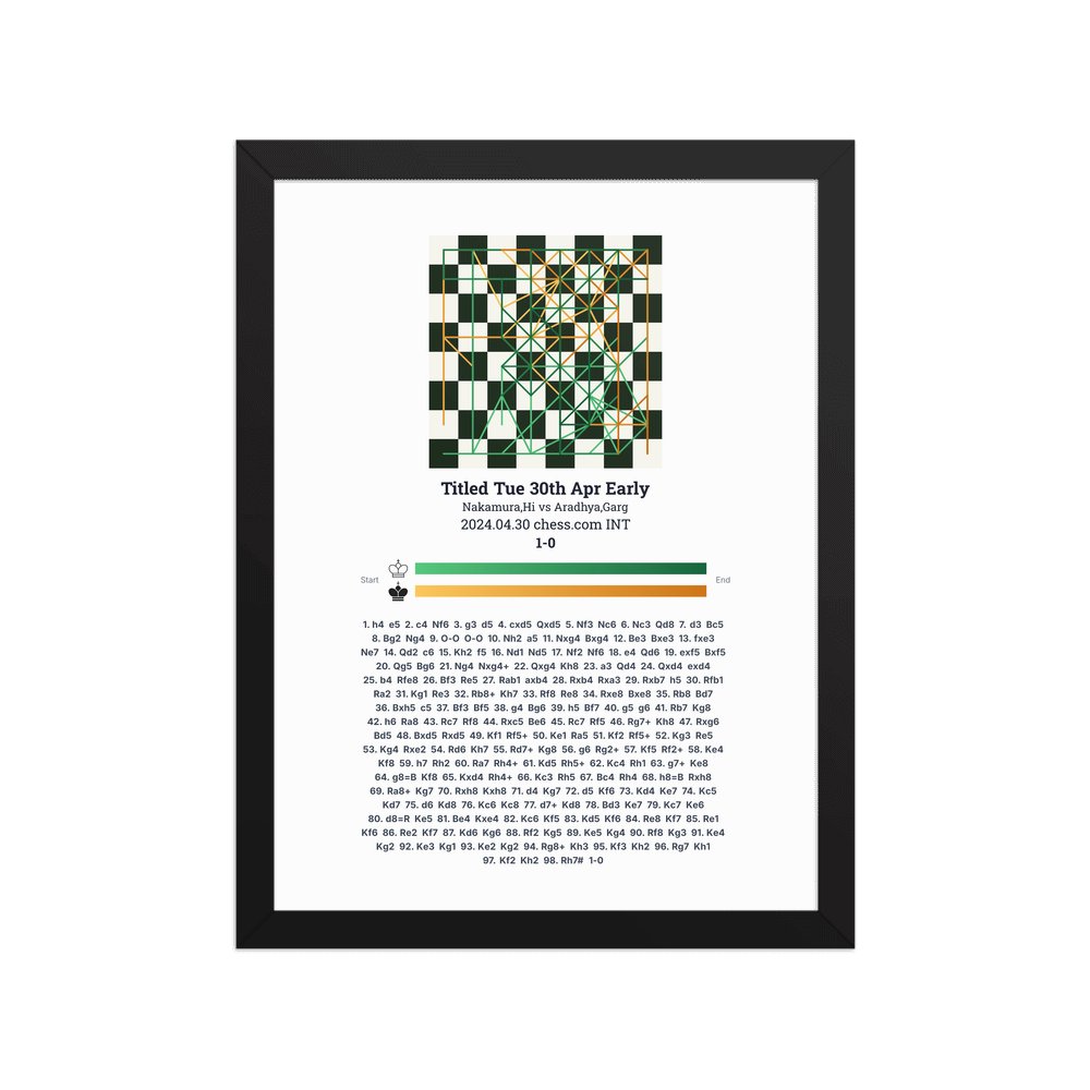 Museum-quality poster on thick, durable matte paper. A sharp, clean look for any chess visualisation.