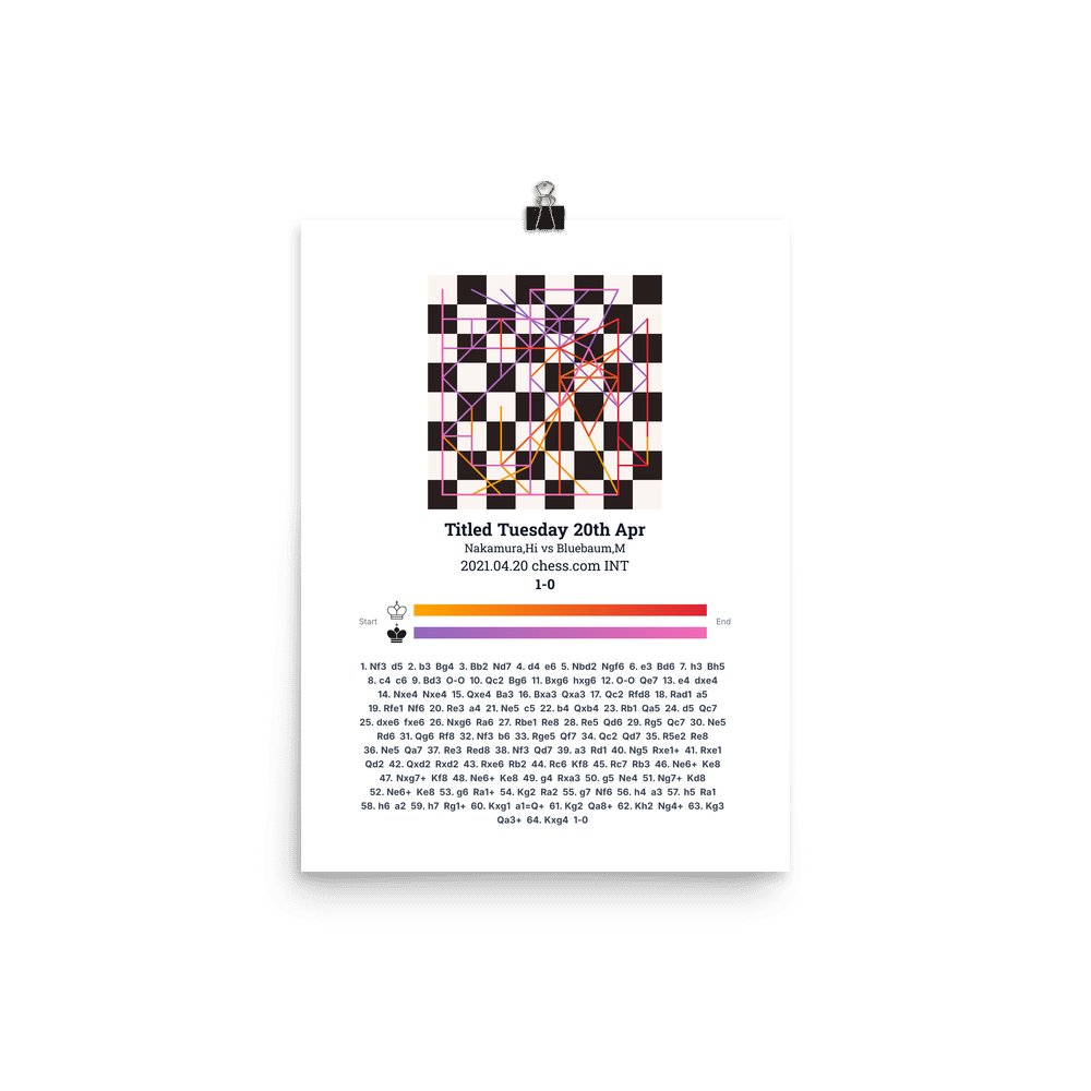 Museum-quality poster on thick, durable matte paper. A sharp, clean look for any chess visualisation.