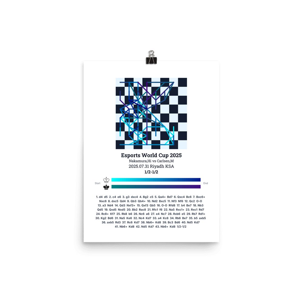 Museum-quality poster on thick, durable matte paper. A sharp, clean look for any chess visualisation.