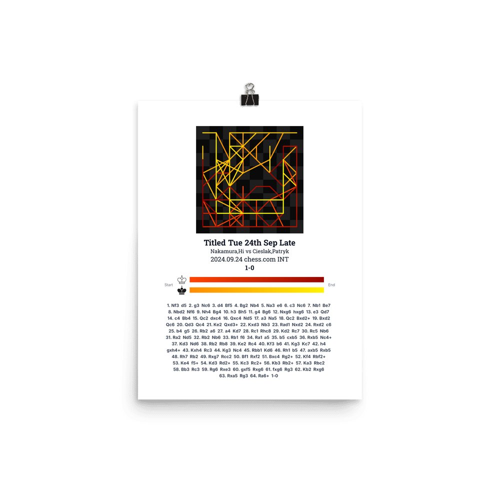 Museum-quality poster on thick, durable matte paper. A sharp, clean look for any chess visualisation.