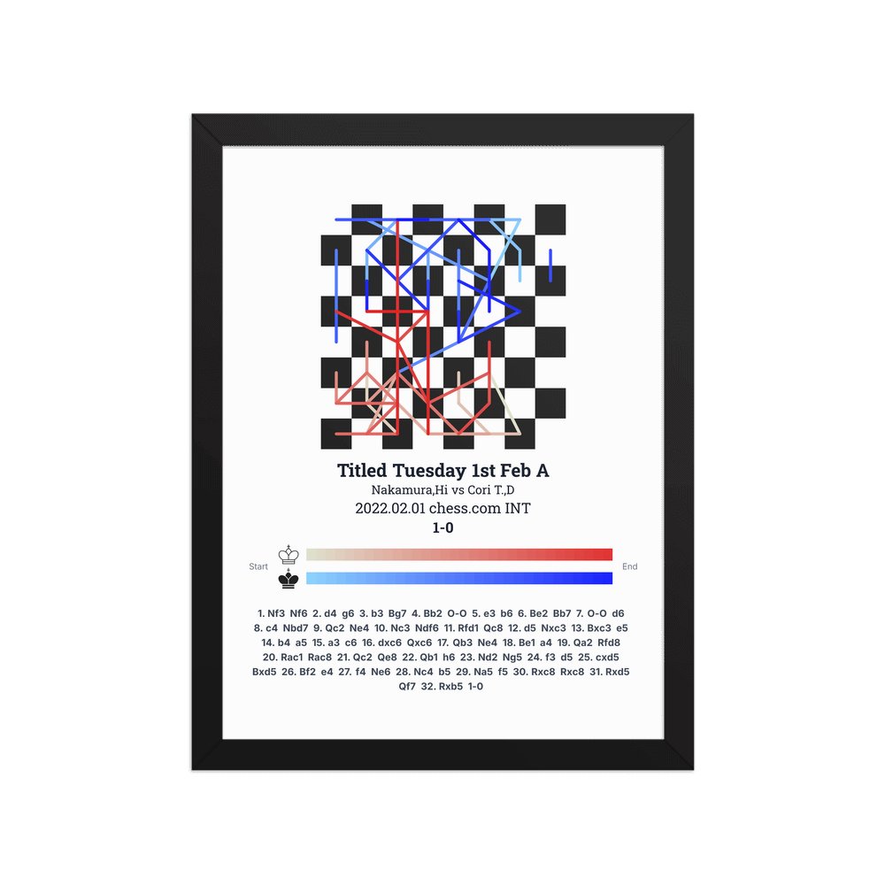 Museum-quality poster on thick, durable matte paper. A sharp, clean look for any chess visualisation.