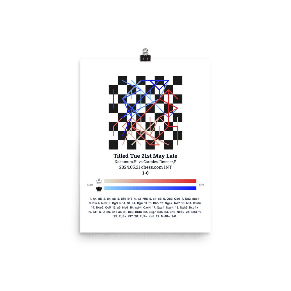 Museum-quality poster on thick, durable matte paper. A sharp, clean look for any chess visualisation.