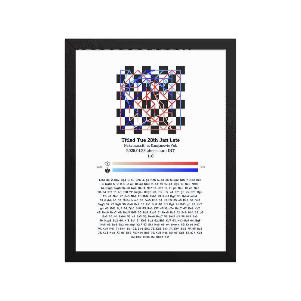 Museum-quality poster on thick, durable matte paper. A sharp, clean look for any chess visualisation.