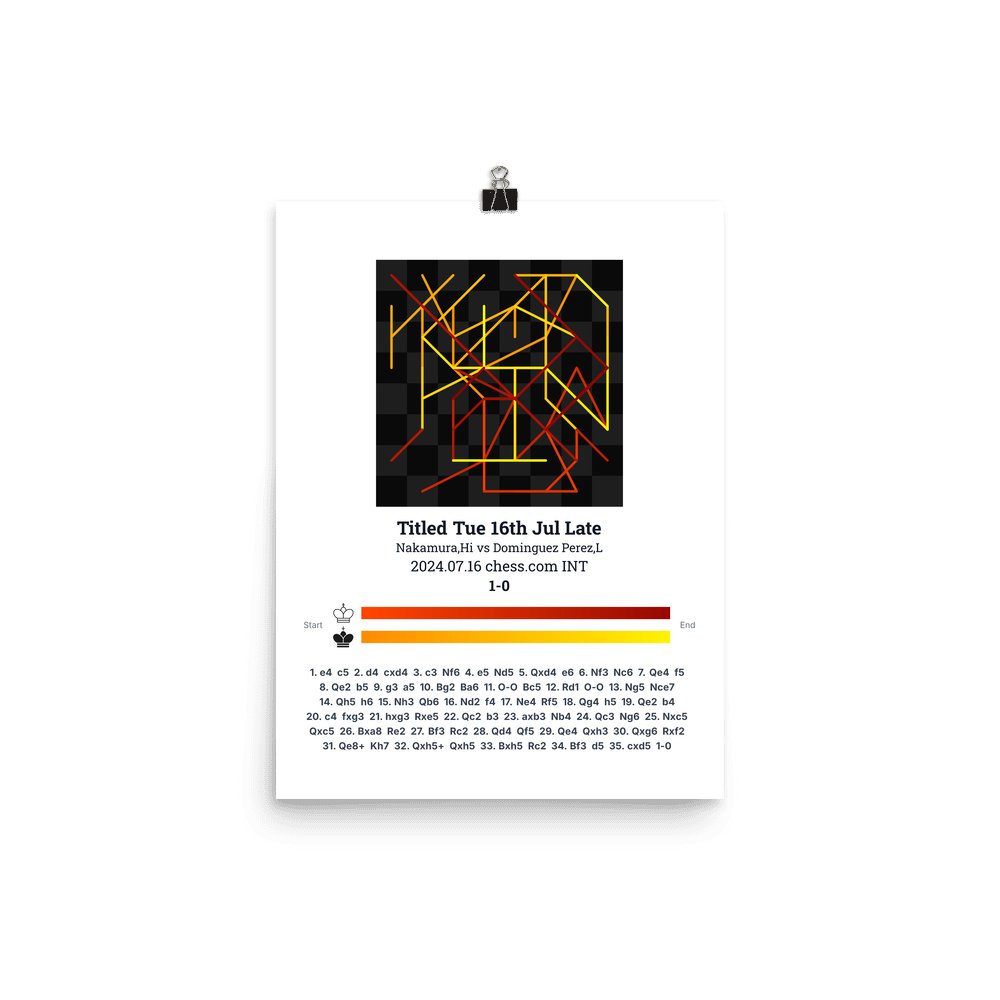 Museum-quality poster on thick, durable matte paper. A sharp, clean look for any chess visualisation.