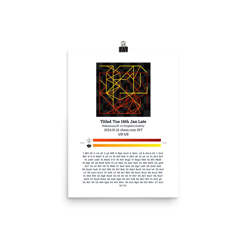 Museum-quality poster on thick, durable matte paper. A sharp, clean look for any chess visualisation.