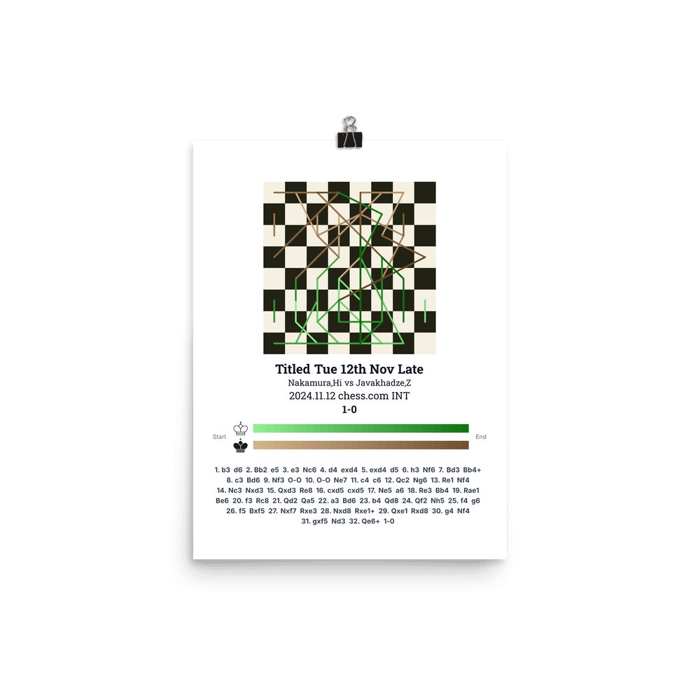 Museum-quality poster on thick, durable matte paper. A sharp, clean look for any chess visualisation.