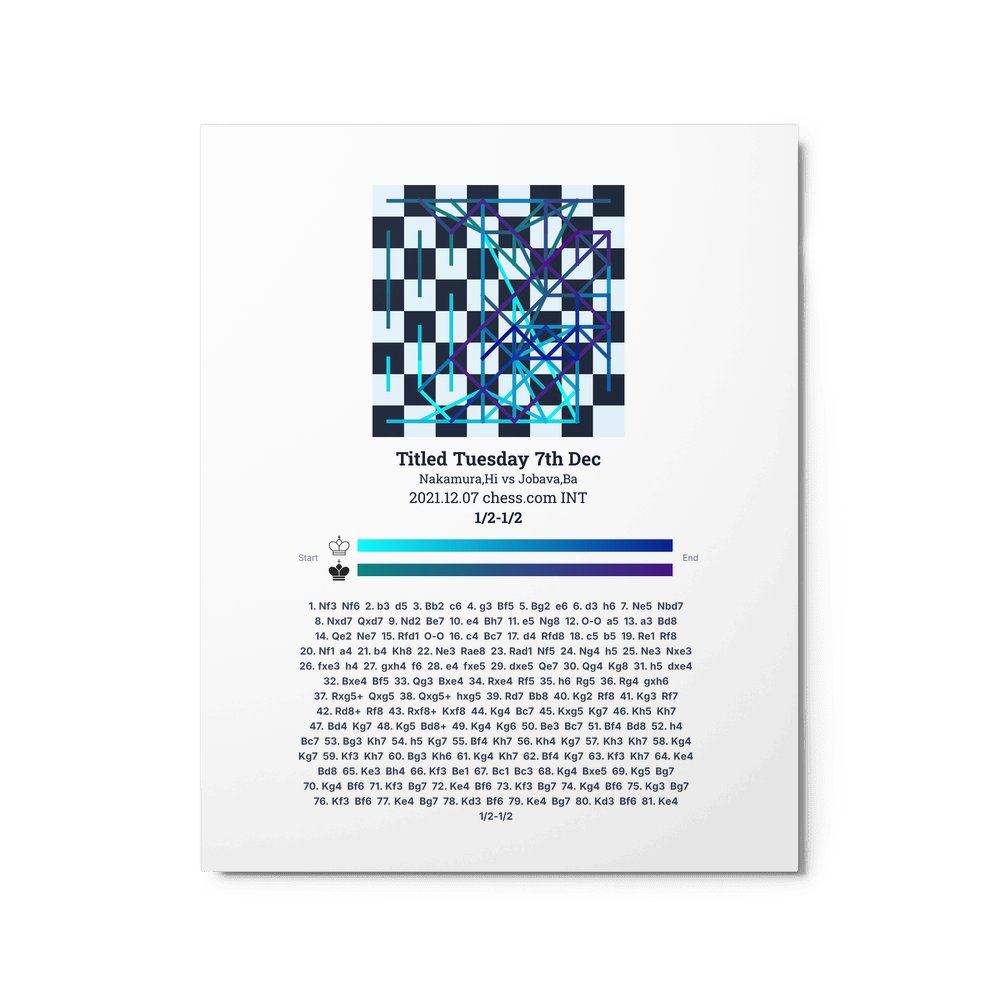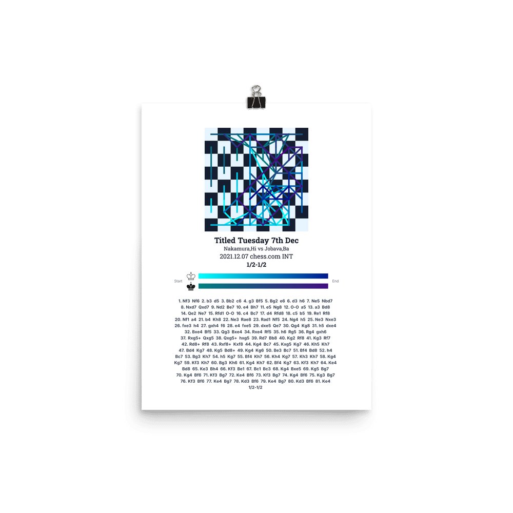 Museum-quality poster on thick, durable matte paper. A sharp, clean look for any chess visualisation.