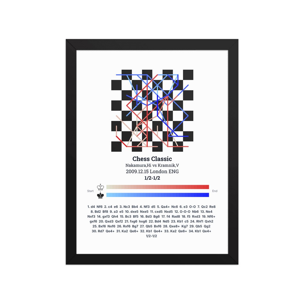 Museum-quality poster on thick, durable matte paper. A sharp, clean look for any chess visualisation.
