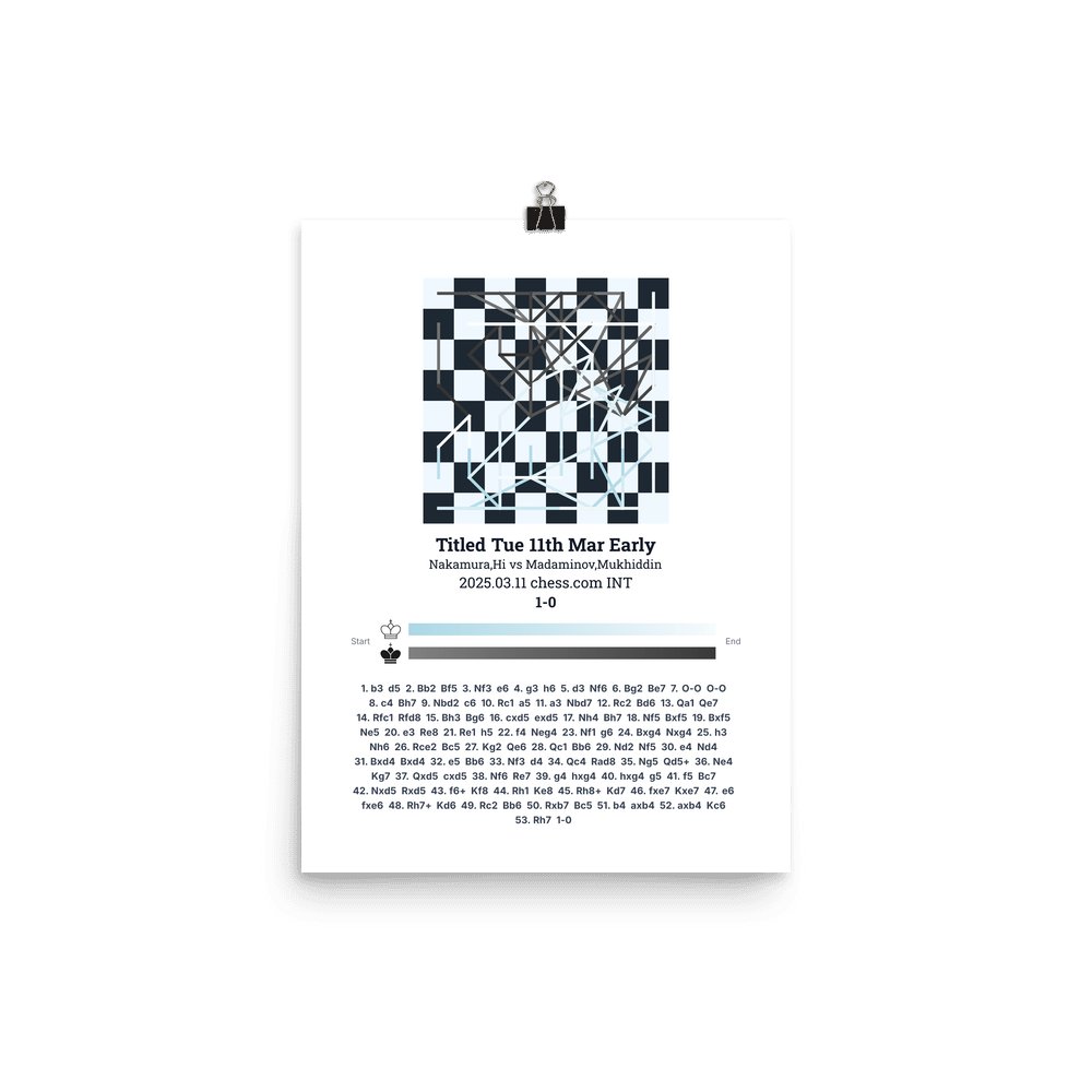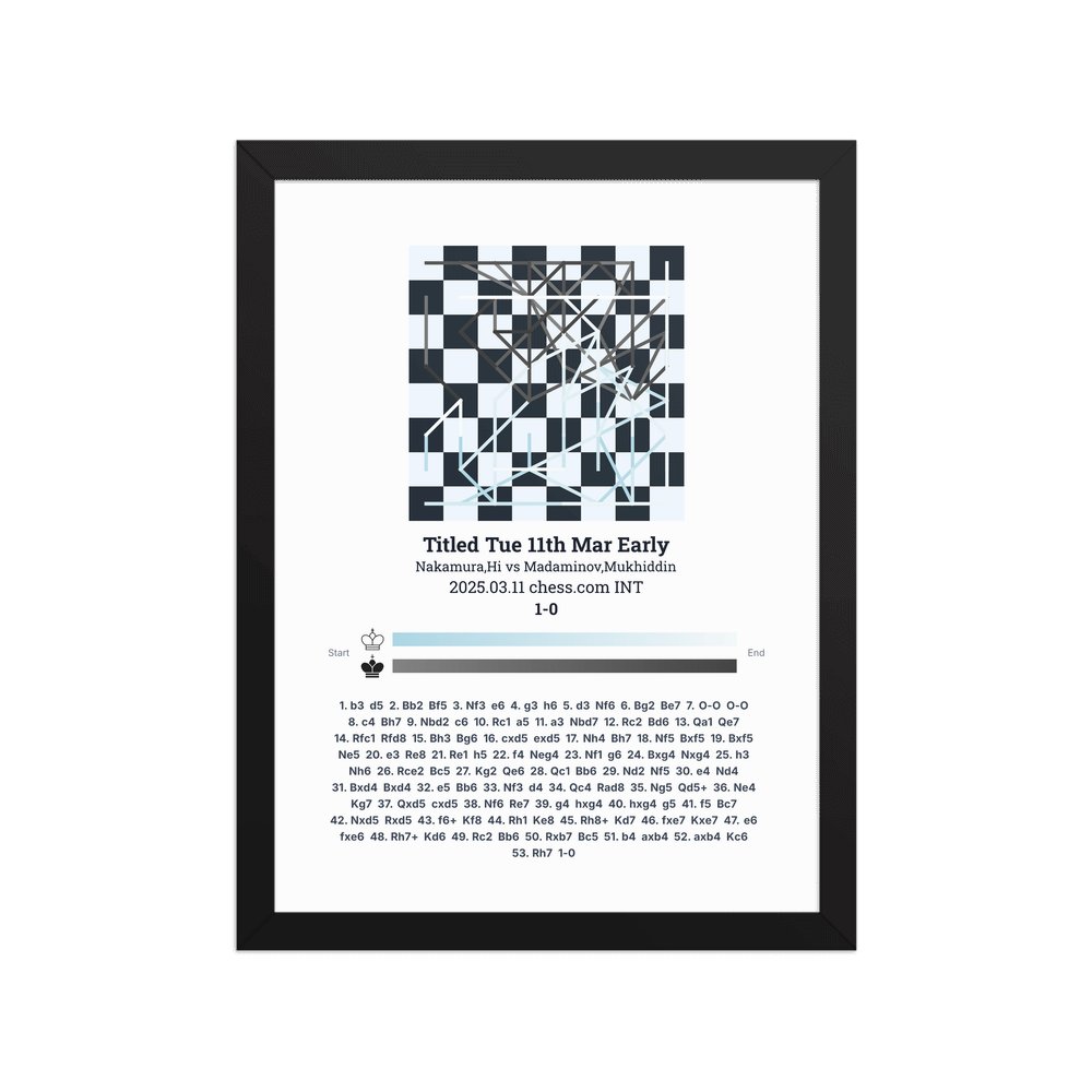 Museum-quality poster on thick, durable matte paper. A sharp, clean look for any chess visualisation.