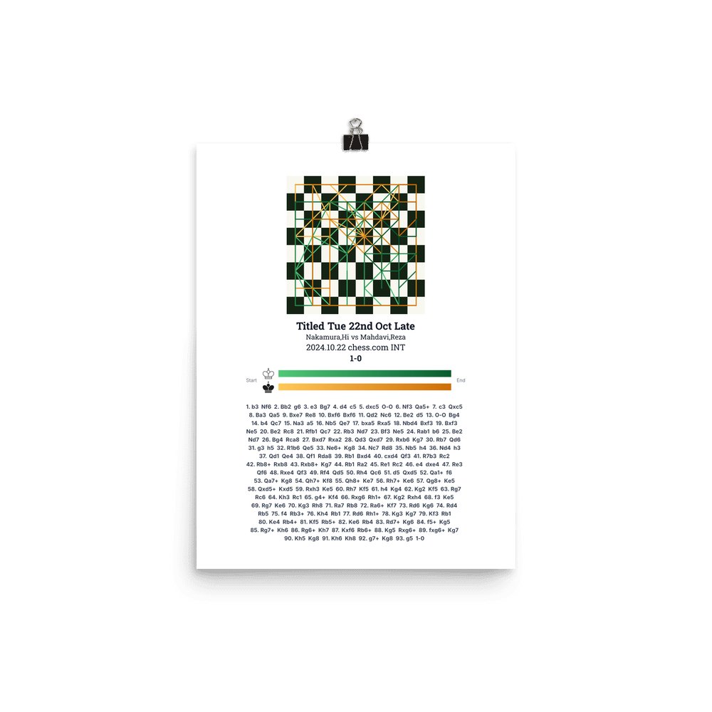 Museum-quality poster on thick, durable matte paper. A sharp, clean look for any chess visualisation.