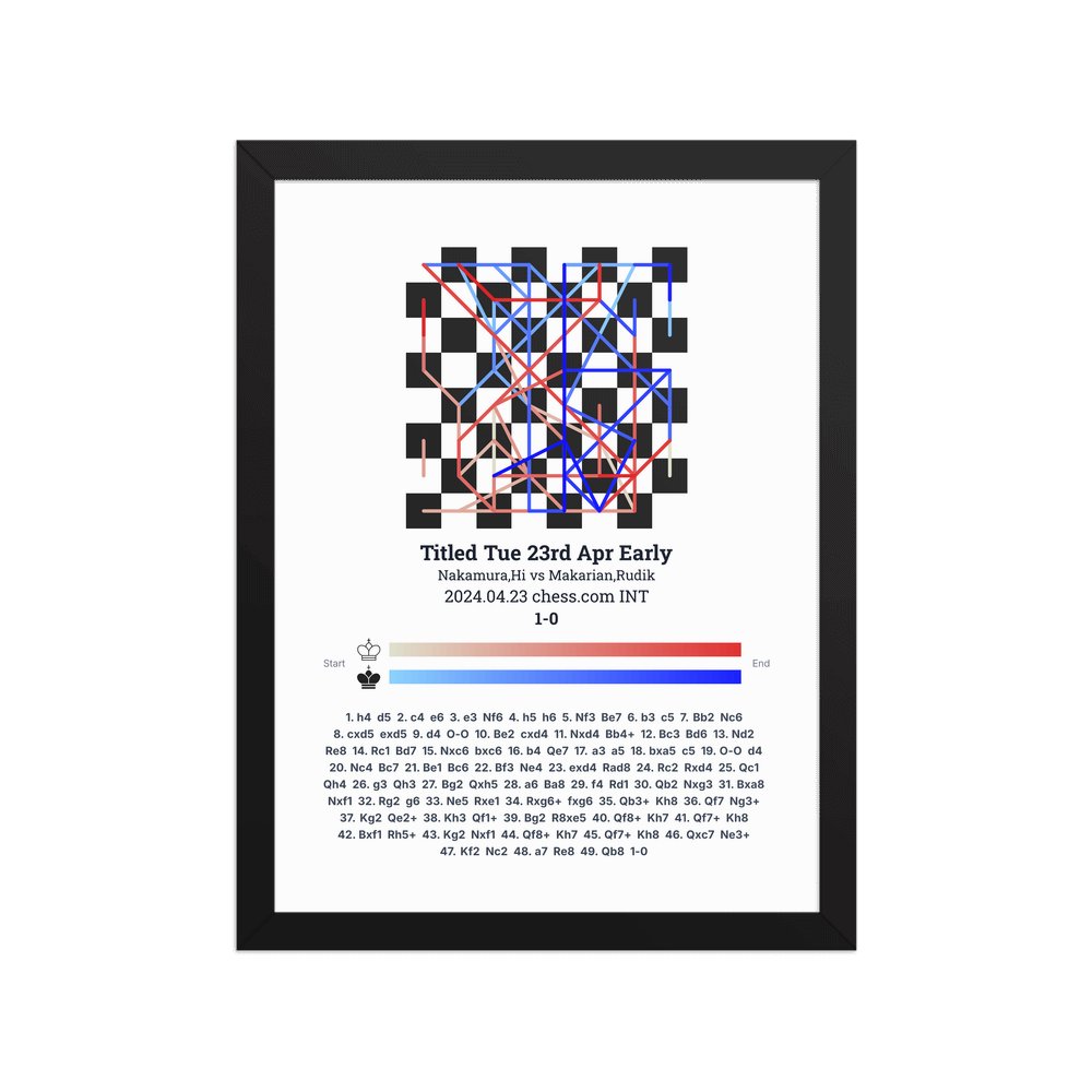 Museum-quality poster on thick, durable matte paper. A sharp, clean look for any chess visualisation.