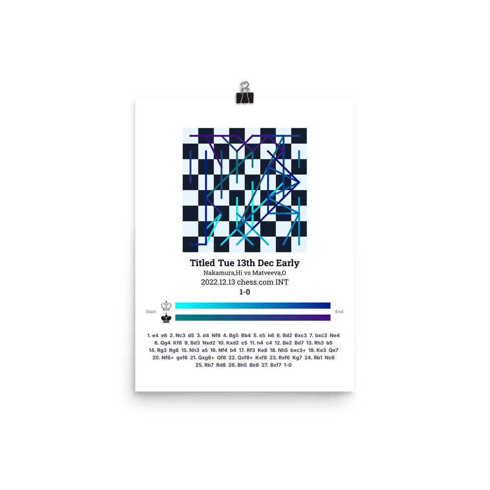 Museum-quality poster on thick, durable matte paper. A sharp, clean look for any chess visualisation.