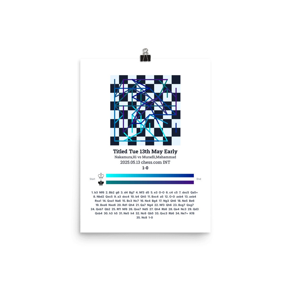 Museum-quality poster on thick, durable matte paper. A sharp, clean look for any chess visualisation.