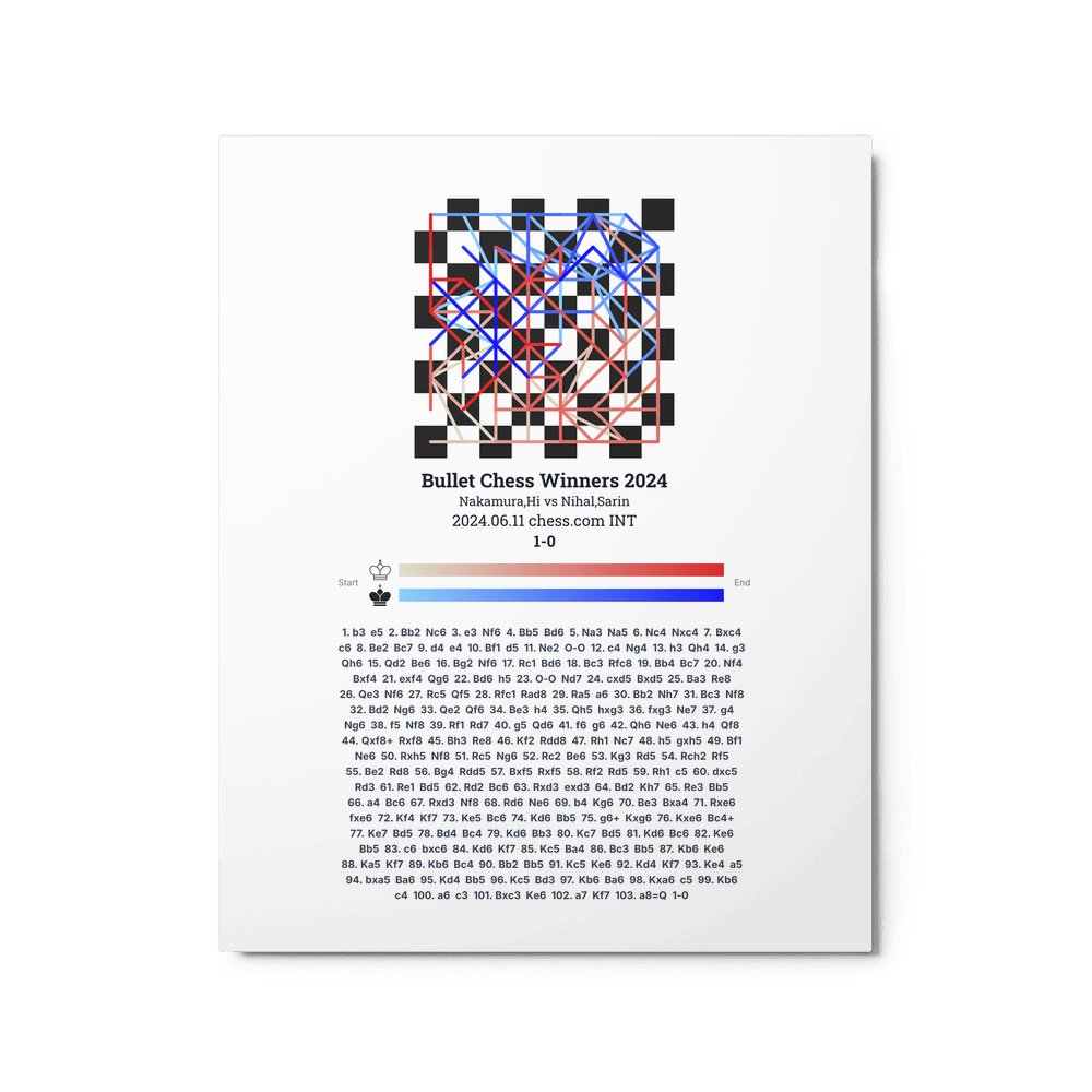 Museum-quality poster on thick, durable matte paper. A sharp, clean look for any chess visualisation.