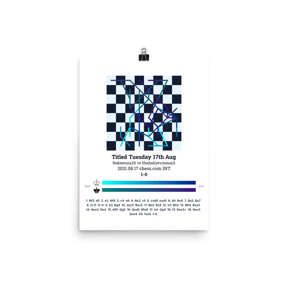 Museum-quality poster on thick, durable matte paper. A sharp, clean look for any chess visualisation.