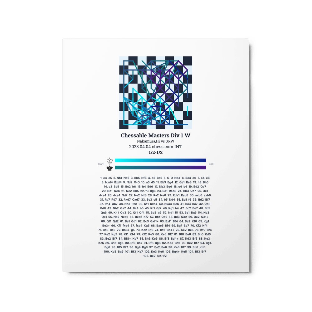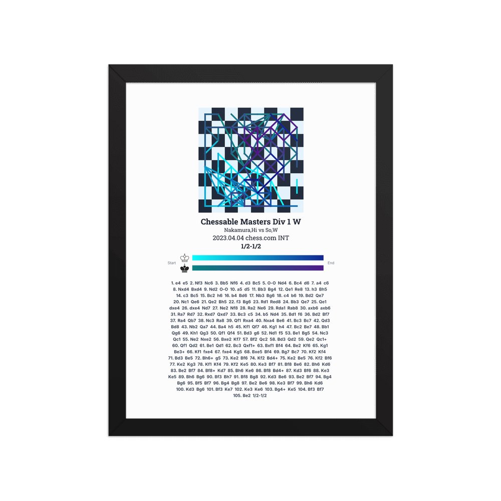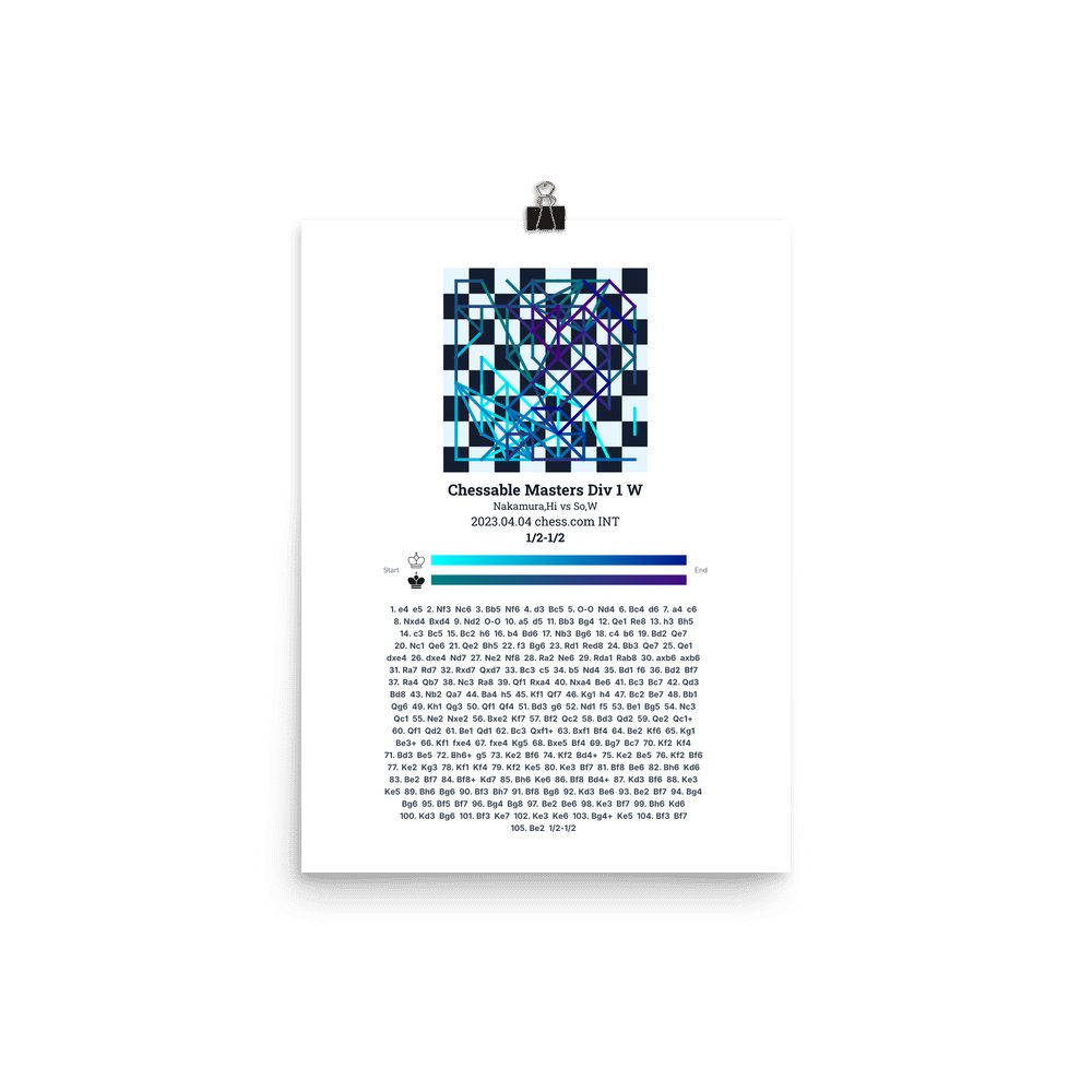 Museum-quality poster on thick, durable matte paper. A sharp, clean look for any chess visualisation.